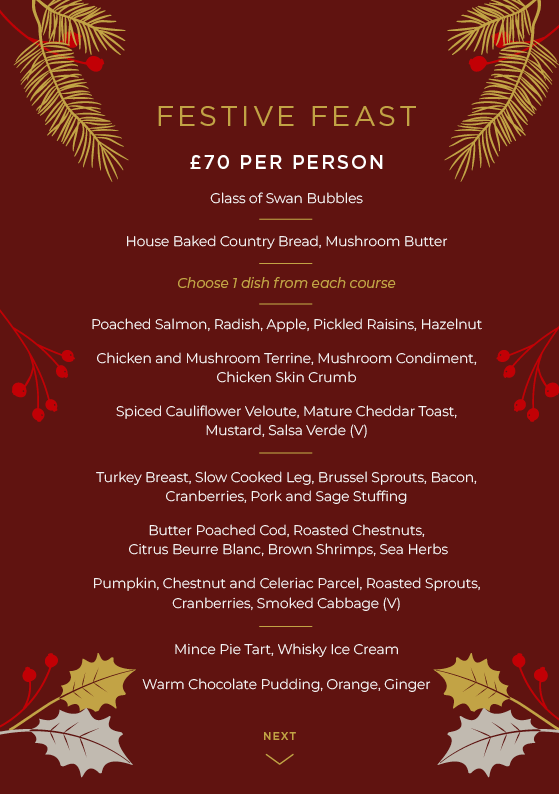Here at The Swan, we are ready and raring, to welcome all those who wish to gather in festive glee. Whether it be Friends, Family or Colleagues, we invite groups of all sizes, with 2 different menus, offering a true Christmas opulence to suit all.